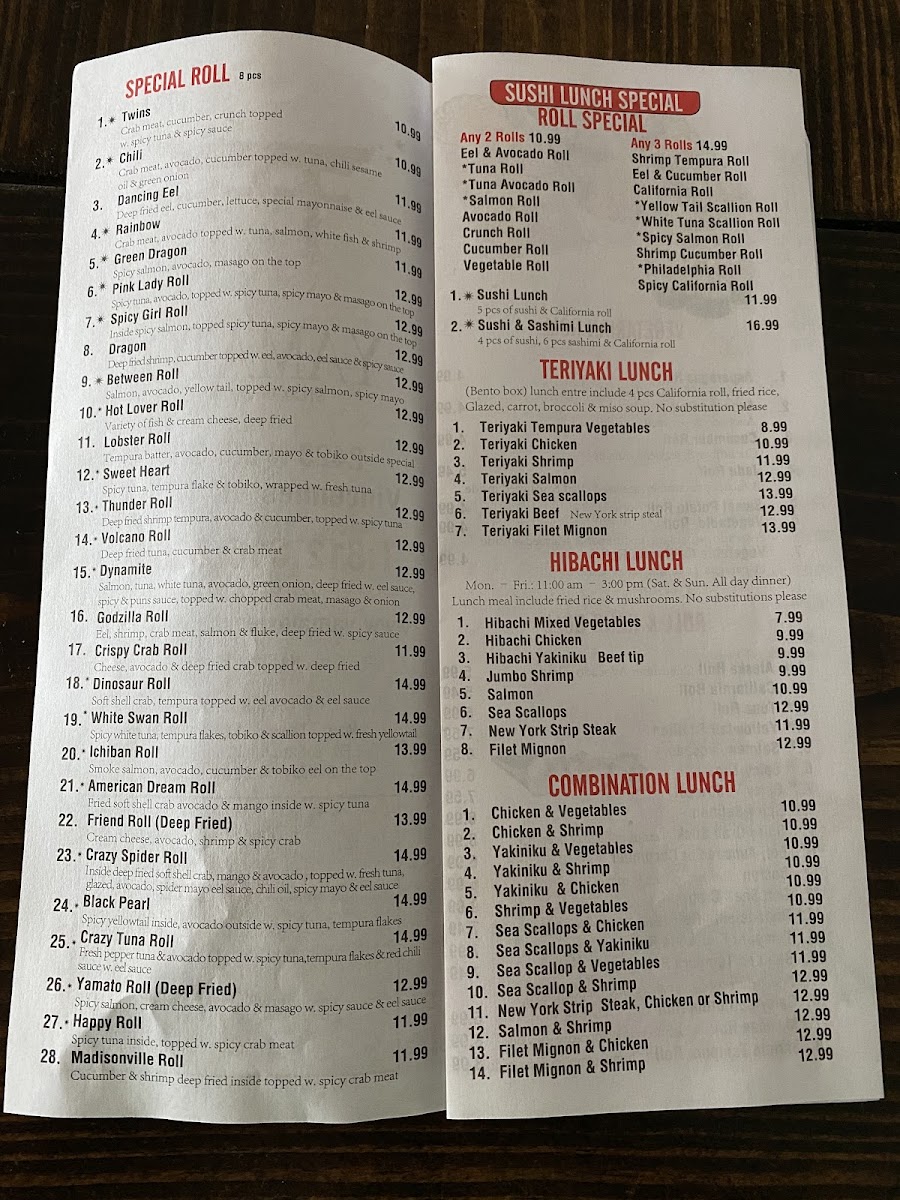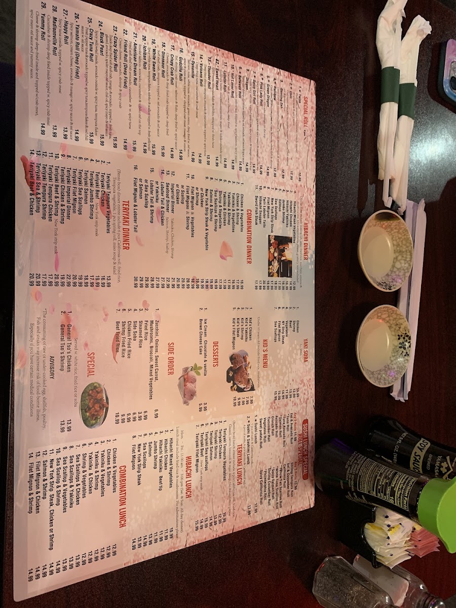 Yamato Steak Of Japan Menu